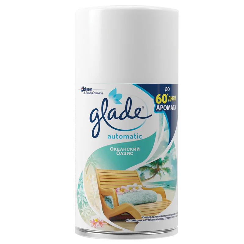 Сменный баллон для освежителя воздуха Glade Automatic океанский оазис, 269мл