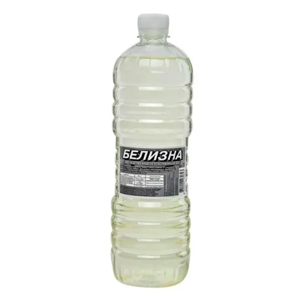 Средство жидкое отбеливающее БЕЛИЗНА объемом 0,9 литра предназначено для отбеливания и удаления пятен с белых изделий из хлопка и льна. Также подходит для мытья эмалированной, фарфоровой, фаянсовой посуды, облицовочной плитки, пластика, унитазов и мусорных ведер.
