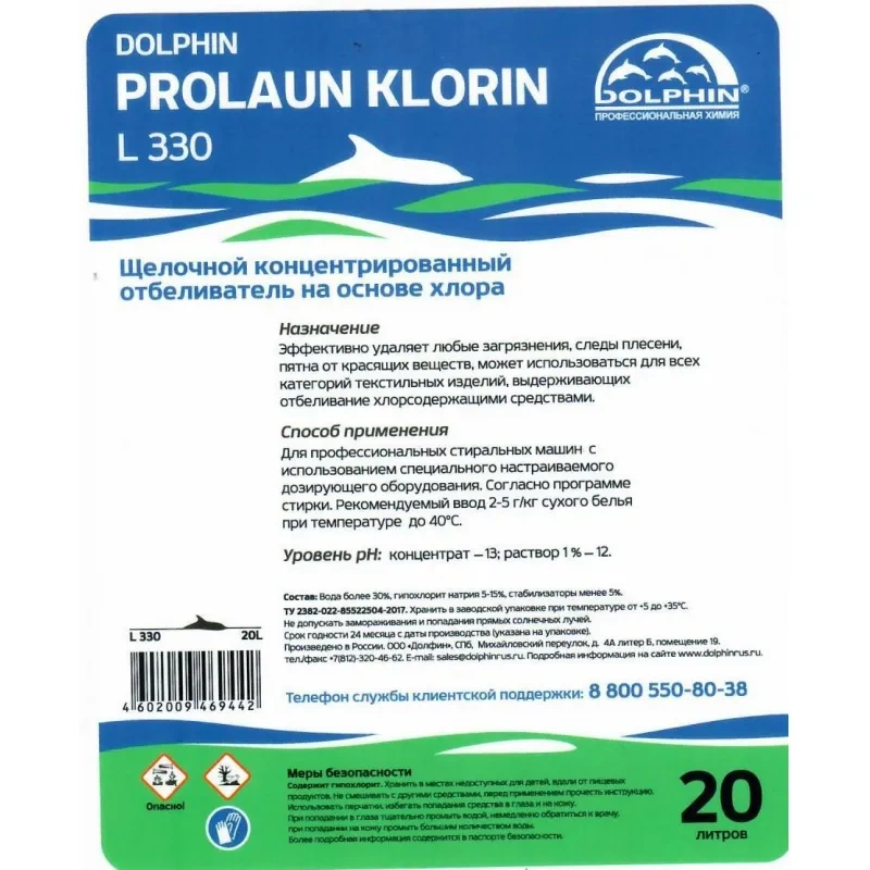 Отбеливатель низкотемпературный кислородный Dolphin ProLaun Klorin (L330-20) 20 л (концентрат)