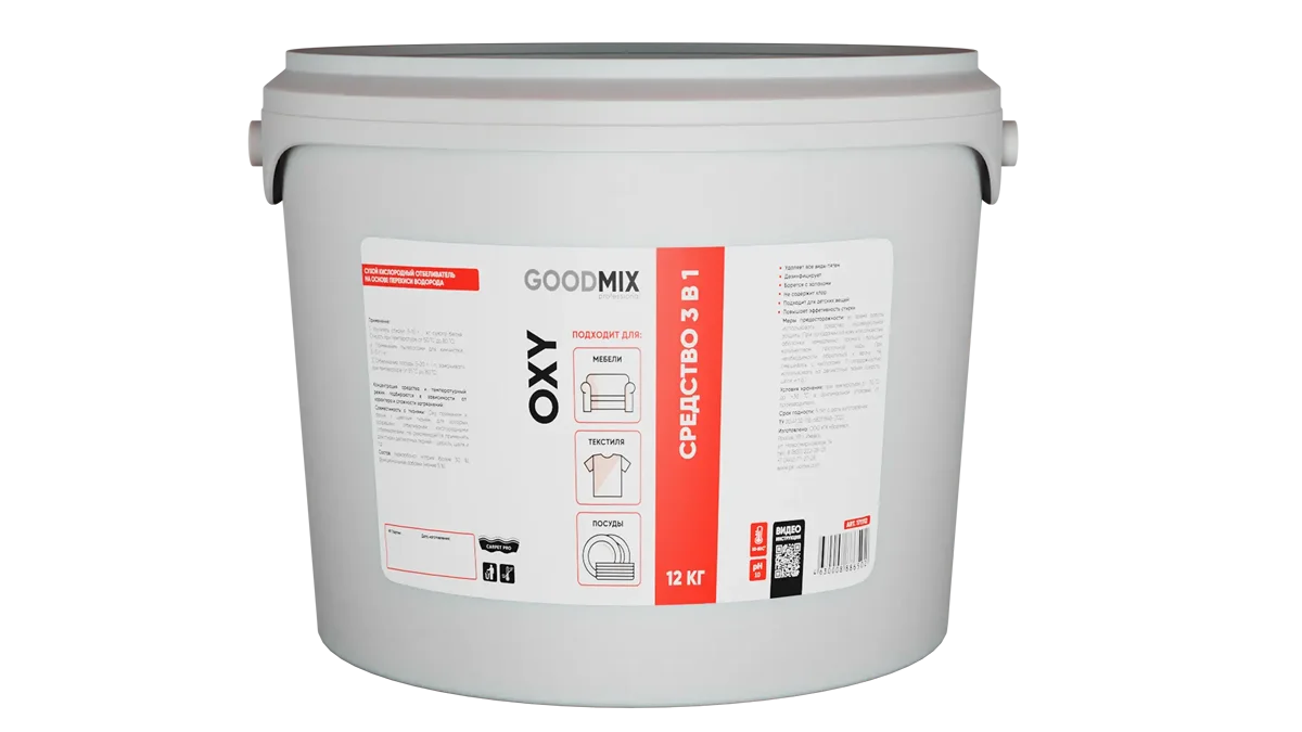 GOODMIX OXY Сухой отбеливатель кислородный обладает мощным отбеливающим действием при невысоких температурах (40 °C) и низких дозировках. Не вызывает изменения оттенков у цветных изделий, устойчивых к кислородному отбеливанию. Эффективно справляется с пятнами вина, соков, фруктов, чая, кофе, травы и другими пятнами животной и растительной природы. В процессе использования разлагается на безопасные компоненты, поэтому не требует дополнительной нейтрализации. Отбеливатель Mix Oxy может использоваться как в комбинации с моющими средствами Mix, так и в качестве основного средства для отбеливания. Средство обладает низкой вязкостью и применимо для любых стиральных машин и дозирующих систем.