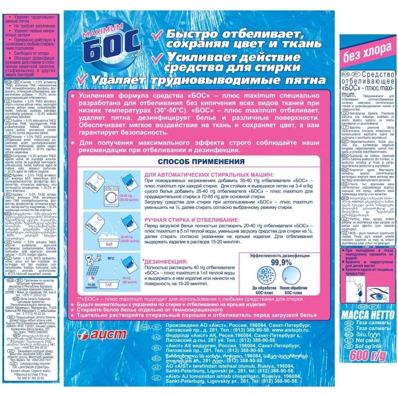 Отбеливатель для белья Бос maximum 600г, пятновыводитель