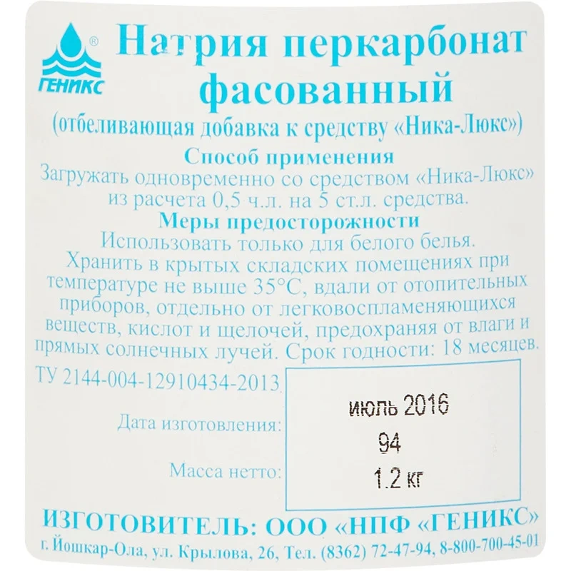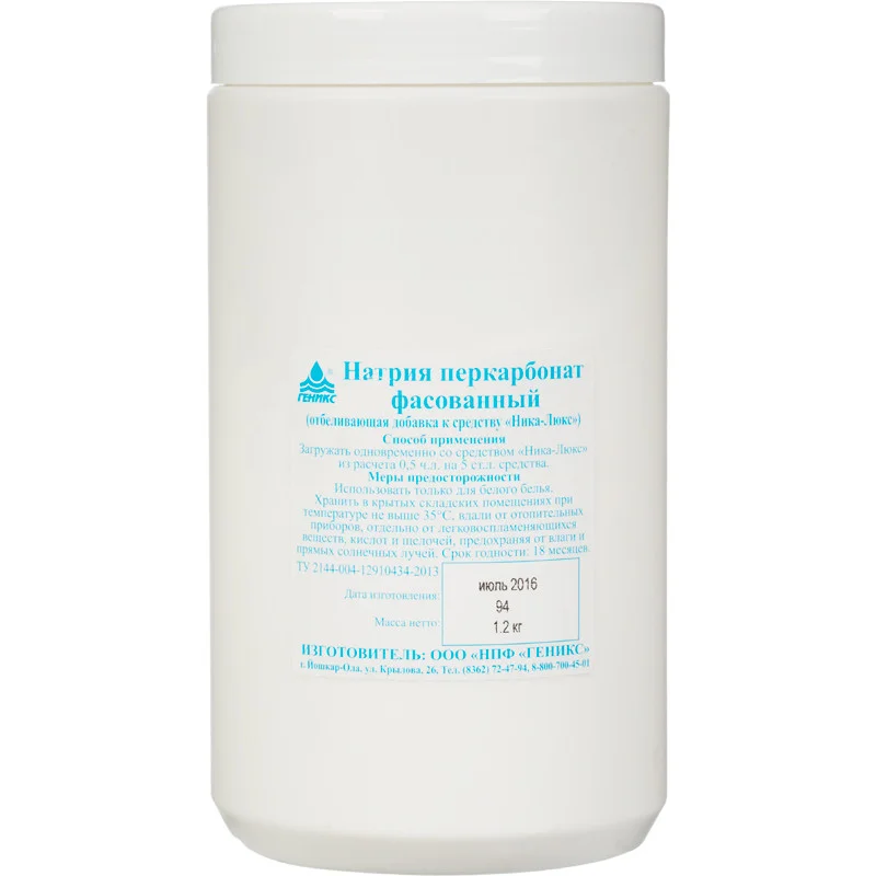 Отбеливающая добавка к моющ. средству Ника 'Люкс', натрия перкарбонат фасов., 1,2кг, с мерной ложкой