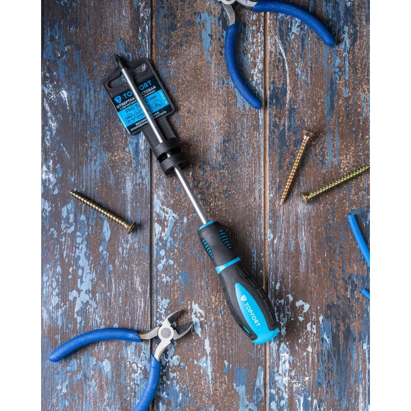 Отвёртка крестовая TOPFORT PH 5×150 для работы с крепёжными изделиями резьбовых соединений с крестообразным шлицем Phillips.
