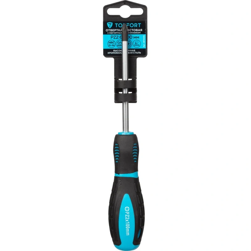 Отвёртка крестовая TOPFORT PZ 6×100 для работы с крепёжными изделиями резьбовых соединений с крестообразным шлицем Pozidriv.