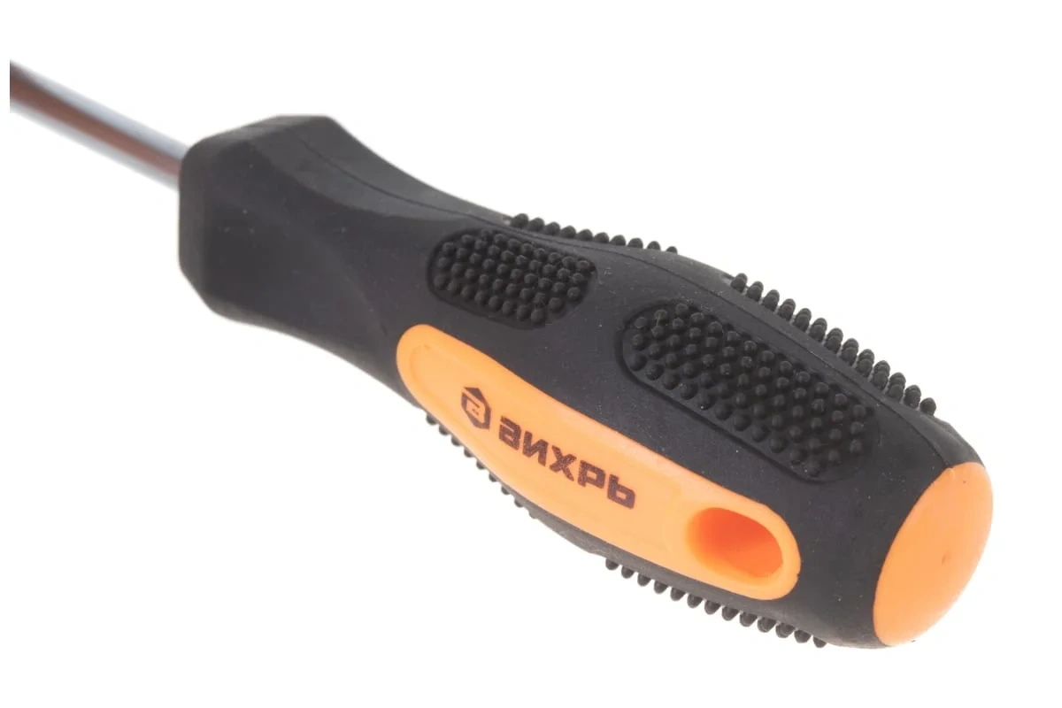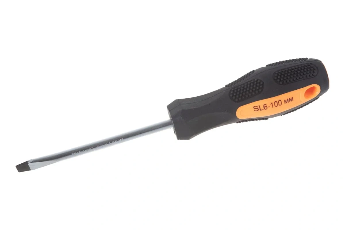 Обладает широким шлицем, которого достаточно для работы с большими винтами. Преимущество модели заключается в наличии нескользящей двухкомпонентной рукоятки. Хромованадиевый стержень обеспечивает максимально полную передачу усилий к крепежу.