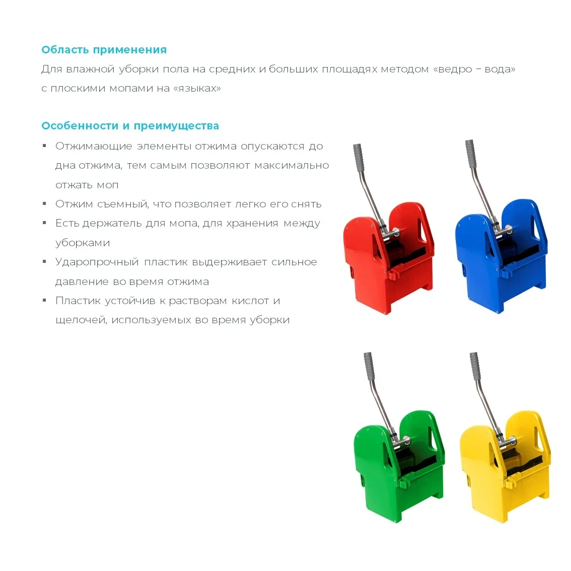 * Отжимающие элементы отжима опускаются до дна отжима, тем самым позволяют максимально отжать моп