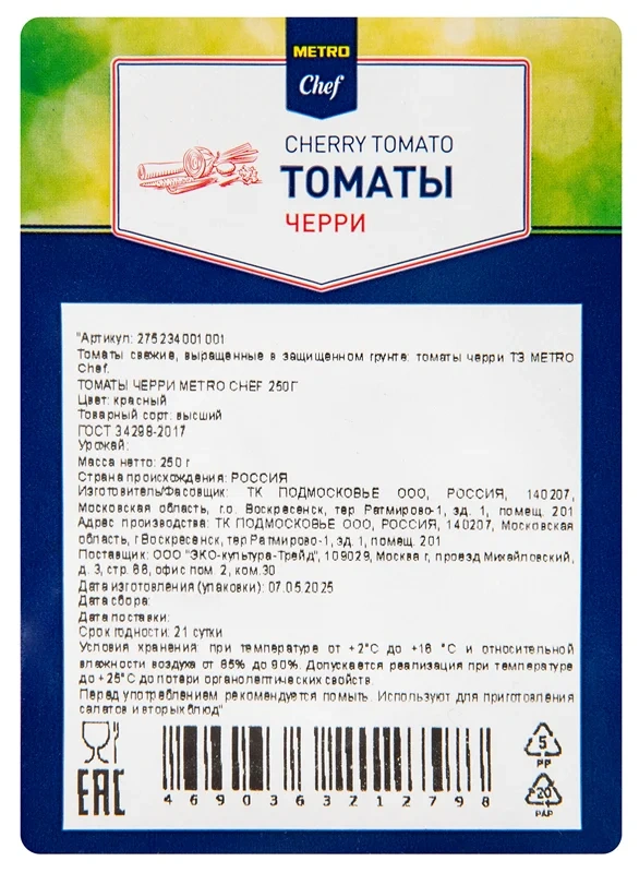 Красные томаты черри METRO Chef сорта Томаджино выращиваются в закрытом грунте, проходят строгую кал...