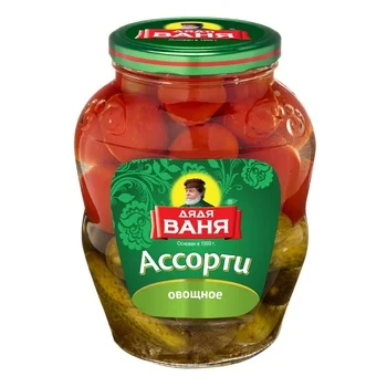 Ассорти Дядя Ваня Овощное станет желанной закуской на праздничном и повседневном столе. Сочный вкус отборных огурцов и помидоров придется по душе даже самому привередливому гурману. Обладает оригинальным ароматом свежих специй. Огурцы и помидоры помещаются в удобную банку с откручивающейся крышечкой. Производится только из свежих овощей. При изготовлении продукта не используются консерванты. Уникальные технологии производства позволяют сохранить уникальный вкус и полезные свойства продукта.