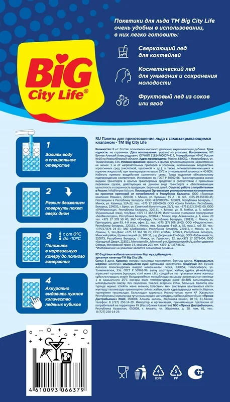 Пакеты для льда Big City Life, 8 x 24 см изготовлены из легкого, прочного и долговечного пищевого материала. Они предназначены для замораживания воды в морозильной камере и позволят приготовить аппетитные охлажденные коктейли и напитки со льдом. Прямоугольная форма разделена на небольшие ячейки, в которые заливается вода. Конструкция предотвращает случайное вытекание воды в морозильной камере и защищает лед от контакта с пищевыми продуктами и посторонними запахами. Представленные пакеты для льда с самозакрывающимся клапаном герметичные и не требуют завязки. В таких пакетах можно замораживать не только воду, но и сок. А еще в них можно замораживать сливочное масло с чесноком и травами. Это отличное решение для готовки.