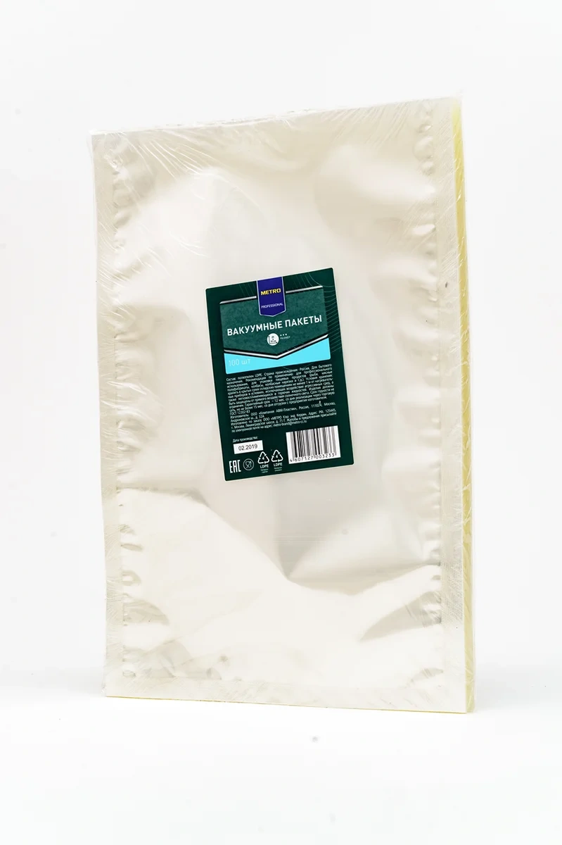 METRO PROFESSIONAL Пакеты вакуумные 20х30 см, 100 шт. — это незаменимый предмет для сохранения свежести и долговечности продуктов. Они предназначены для использования с вакууматором и обеспечивают максимально герметичное покрытие, защищая продукты от негативного влияния внешней среды. Основные преимущества вакуумных пакетов METRO PROFESSIONAL: — Долговечность и надежность. Пакеты изготовлены из высококачественного материала, очень прочного и долговечного. — Сохранение свежести. Упаковка дает возможность сохранить свежесть продуктов, предотвращая окисление и гниение. Благодаря герметичной упаковке, продукты остаются свежими и вкусными в течение длительного времени. — Защита от воздуха и влаги. Пакеты обеспечивают герметичное покрытие, которое защищает продукты от воздуха и влаги. Это предотвращает рост бактерий и позволяет продуктам сохранять свои качества и ароматы. — Удобство эксплуатации. Пакеты имеют удобный размер — 20х30 см, который позволяет упаковывать различные продукты. Они также легко маркируются, что делает их удобными в использовании. — Разнообразие применения. Пакеты можно применять для упаковки любых продуктов — от свежих овощей и фруктов до мяса и рыбы. Они прекрасно подходят для домашнего использования, а также для профессиональных поваров и ресторанов. Пакеты вакуумные METRO PROFESSIONAL — это оптимальное решение для хранения заморозки. После приобретения этих пакетов появляется уверенность и удовольствие от сохранения свежести продуктов на долгое время.