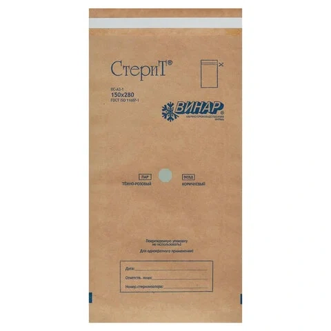 Пакеты для стерилизации Винар Стерит 280х150мм, крафт, самоклеящиеся, 100шт/уп