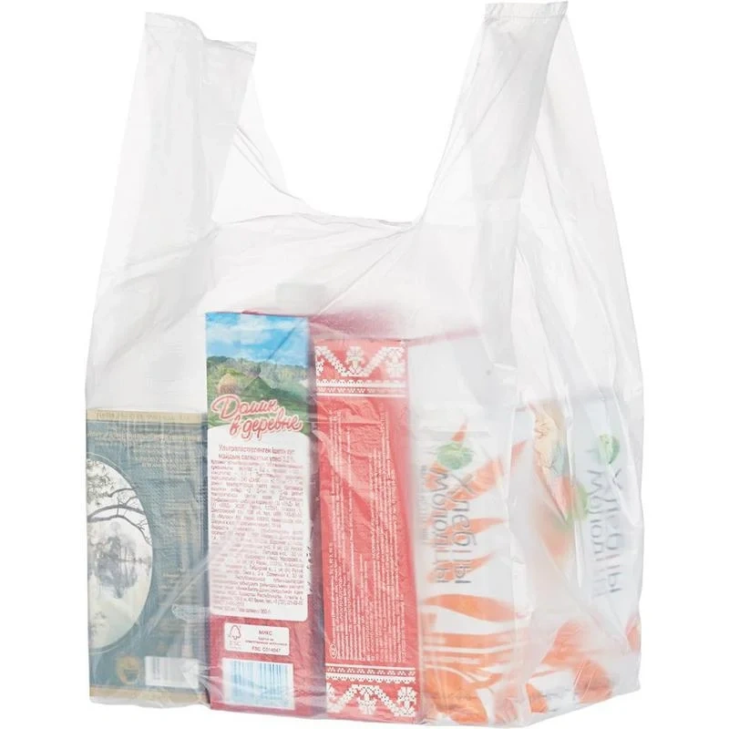 Пакет-майка из полиэтилена низкого давления (ПНД), не содержит токсических веществ. Максимальная нагрузка — 2 кг. Длина каждого пакета с ручками — 44 см, ширина — 24 см, ширина бокового фальца — 12 см. В упаковке — 85 пакетов белого цвета. Сфера применения: для повседневного использования на складах и в торговых залах самообслуживания для фасовки и взвешивания, на кассах в небольших магазинах, аптеках.