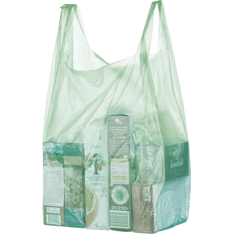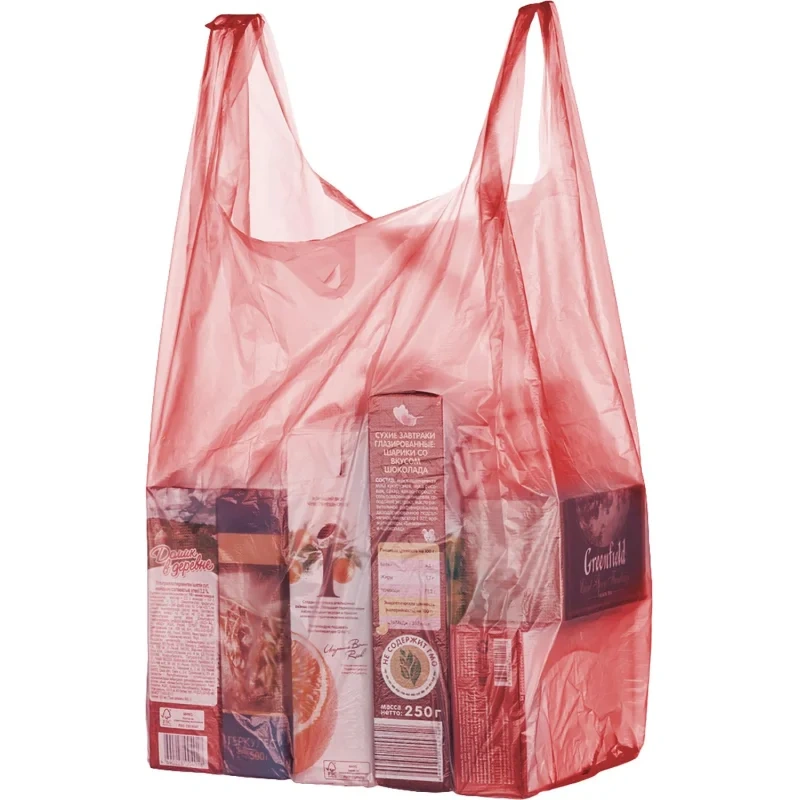 Полиэтиленовые пакеты-майки ПНД изготовлены из полиэтилена низкого давления. Длина с учетом ручек — 65 см, ширина — 35 см. Выдерживают нагрузку до 7 кг. Упаковка содержит 100 пакетов нескольких цветов.