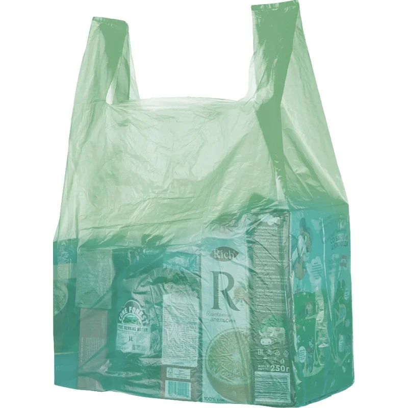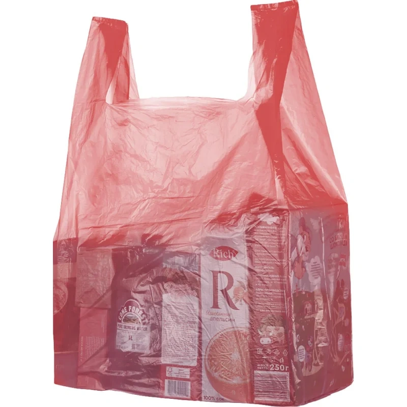 Полиэтиленовые пакеты-майки ПНД изготовлены из полиэтилена низкого давления. Длина с учетом ручек — 68 см, ширина — 38 см. Выдерживают нагрузку до 8 кг. Упаковка содержит 100 пакетов нескольких цветов.