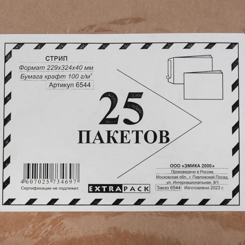 Пакет Extrapack С4 (229×324 мм) из крафт-бумаги 100 г/кв.м стрип (25 штук в упаковке) 229×324 мм выполнен из крафт-бумаги плотностью 100 г/кв.м. Имеет клеевое нанесение типа стрип (отрывная силиконовая лента). Боковое и донное расширение — 40 мм. Предназначен для почтовых отправлений различной многостраничной документации и объемных вложений.