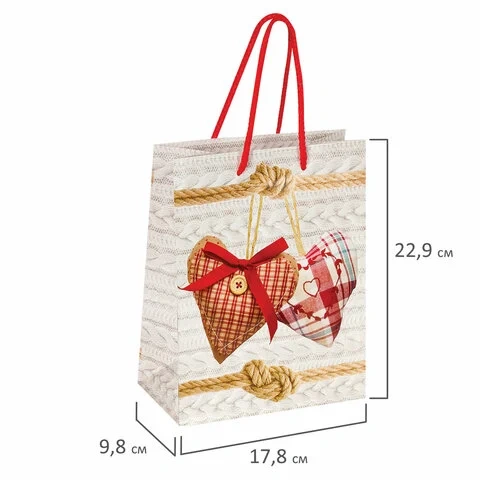 Пакет подарочный 17,8x9,8x22,9 см, ЗОЛОТАЯ СКАЗКА 'Два сердца', ламинированный, 606573