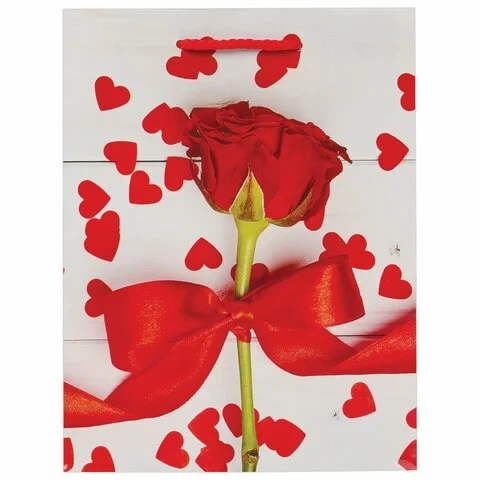 Пакет подарочный 17,8x9,8x22,9 см, ЗОЛОТАЯ СКАЗКА 'Роза с лентой', ламинированный, 606574