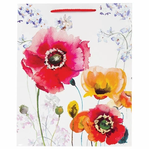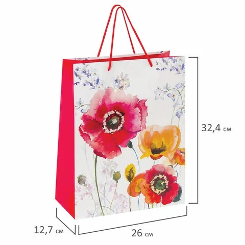 Пакет подарочный 26x12,7x32,4 см, ЗОЛОТАЯ СКАЗКА 'Красные и желтые маки', ламинированный, 606584