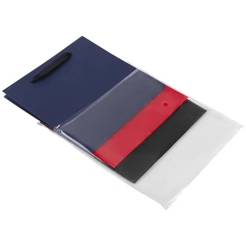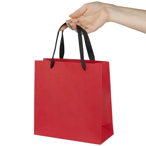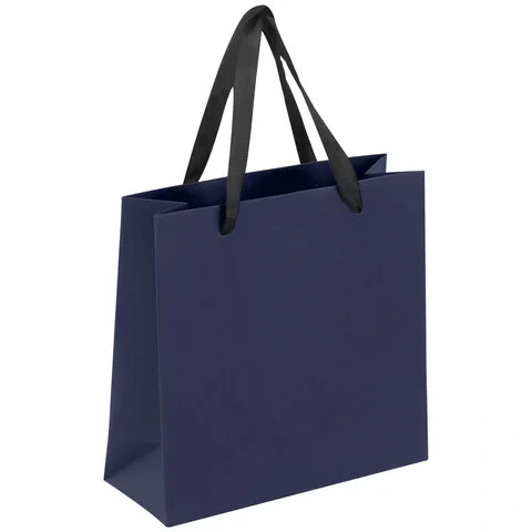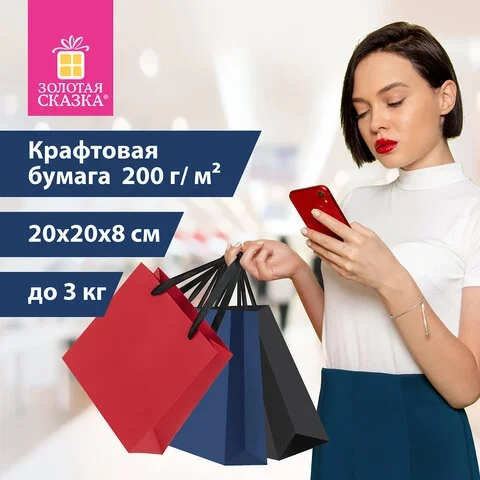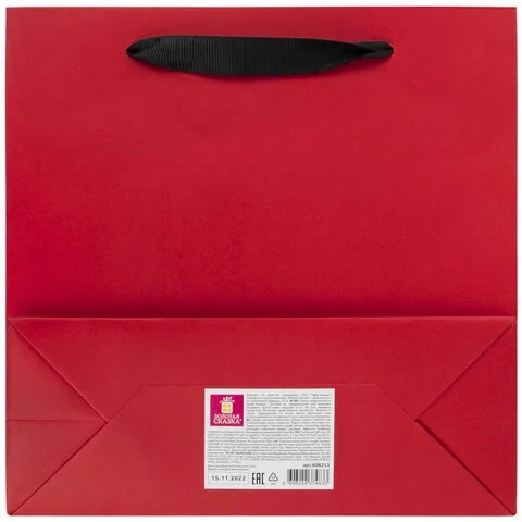 Набор подарочных пакетов изготовлен из крафтовой бумаги с ленточными ручками из полиэстера. В наборе подарочные пакеты представлены в трех цветах: в однотонном красном, синем, чёрном. Размер пакета – 20х20х8 см.