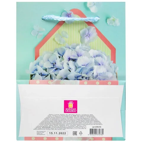 Пакет подарочный Золотая Сказка Summer Flowers, 11.4x6.4x14.6см, голубой