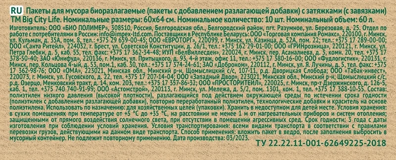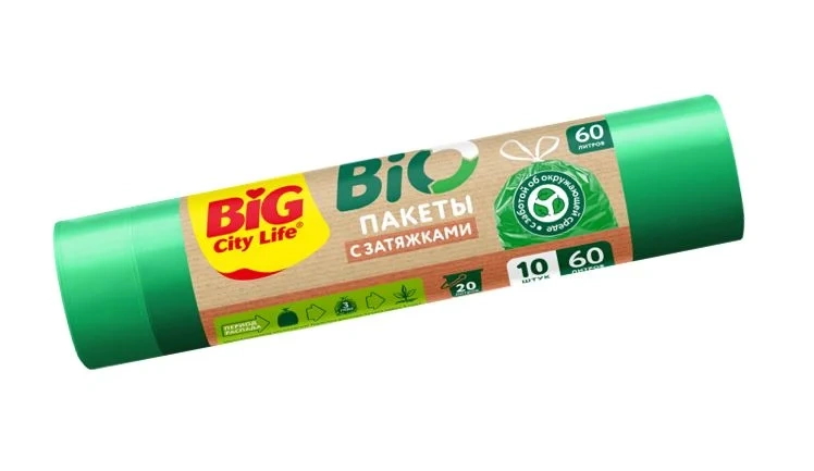 Пакеты для мусора Big City Life Bio с затяжкой 10шт, 60л