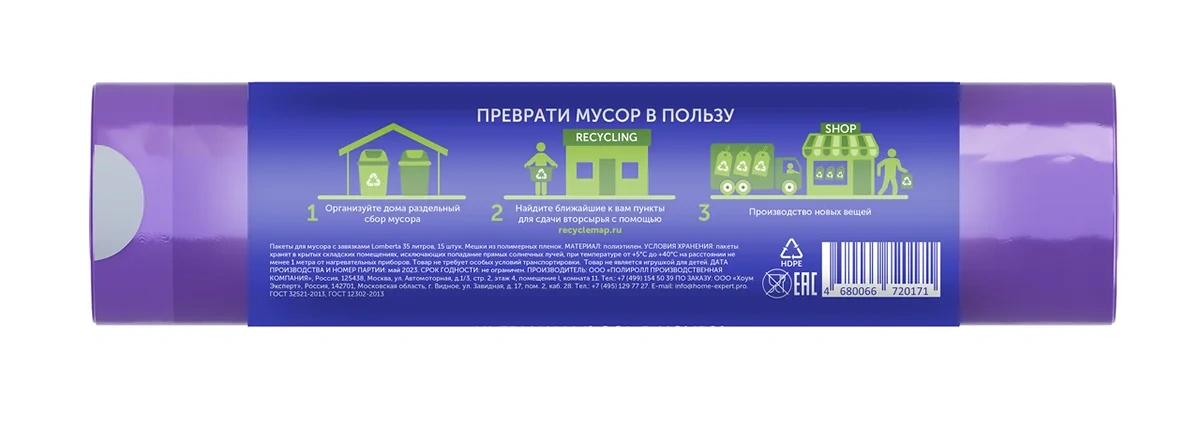 | Комплектация | пакеты для мусора - 15 шт. |