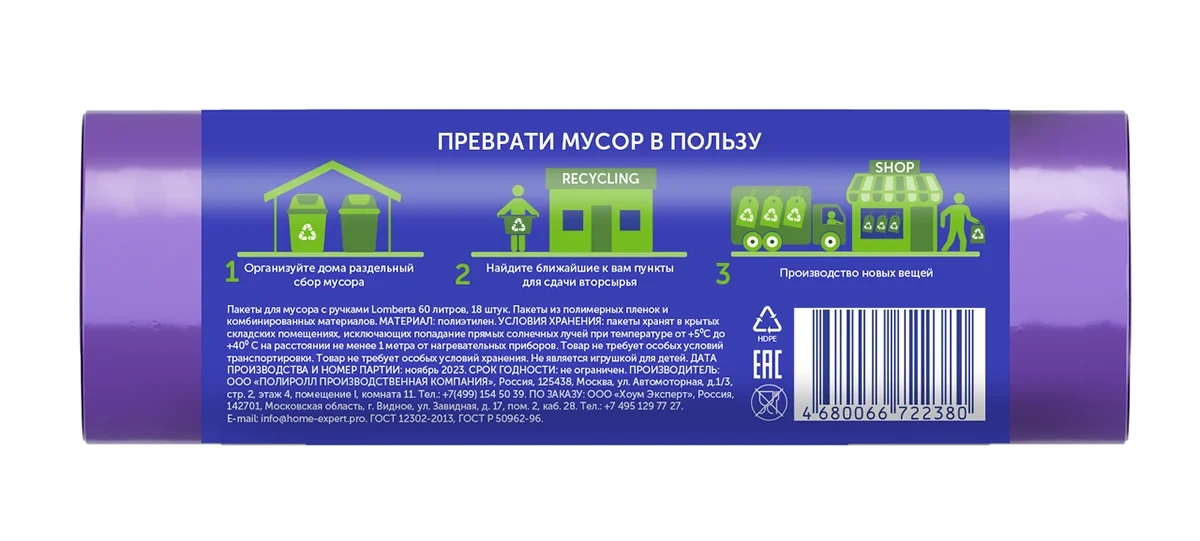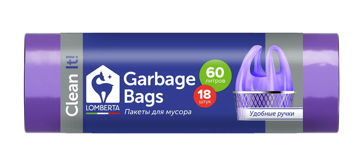 Пакеты для мусора Lomberta с ручками 18шт, 60л
