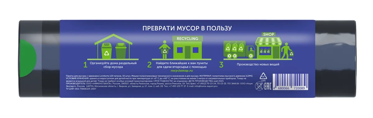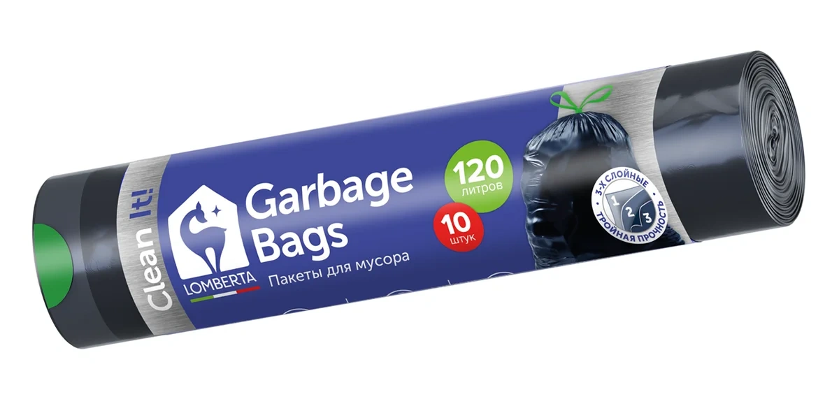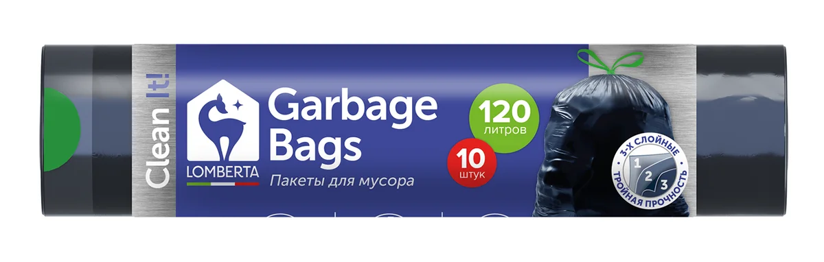 Мешки для мусора Lomberta с затяжкой (120л 10 шт.) - премиальная линейка мусорных пакетов. Изготовлены из трехслойного полиэтилена высокого давления (ПВД), что увеличивает прочность и грузоподъемность. Пакеты для мусора Lomberta используются для хранения и транспортировки мусора. Легко затягиваются, в них удобно выкидывать мусор.