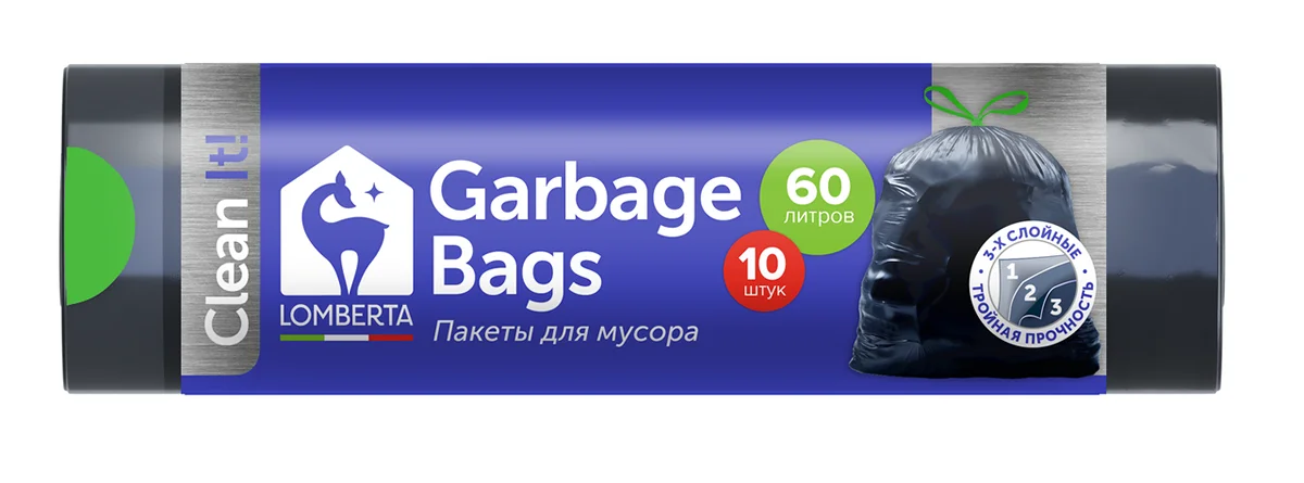Мешки для мусора Lomberta с затяжкой (60л 10 шт.) - премиальная линейка мусорных пакетов. Изготовлены из трехслойного полиэтилена высокого давления (ПВД), что увеличивает прочность и грузоподъемность. Пакеты для мусора Lomberta используются для хранения и транспортировки мусора. Плотные, полностью непрозрачные, цвет - синий металлик. Легко затягиваются, в них удобно выкидывать мусор.
