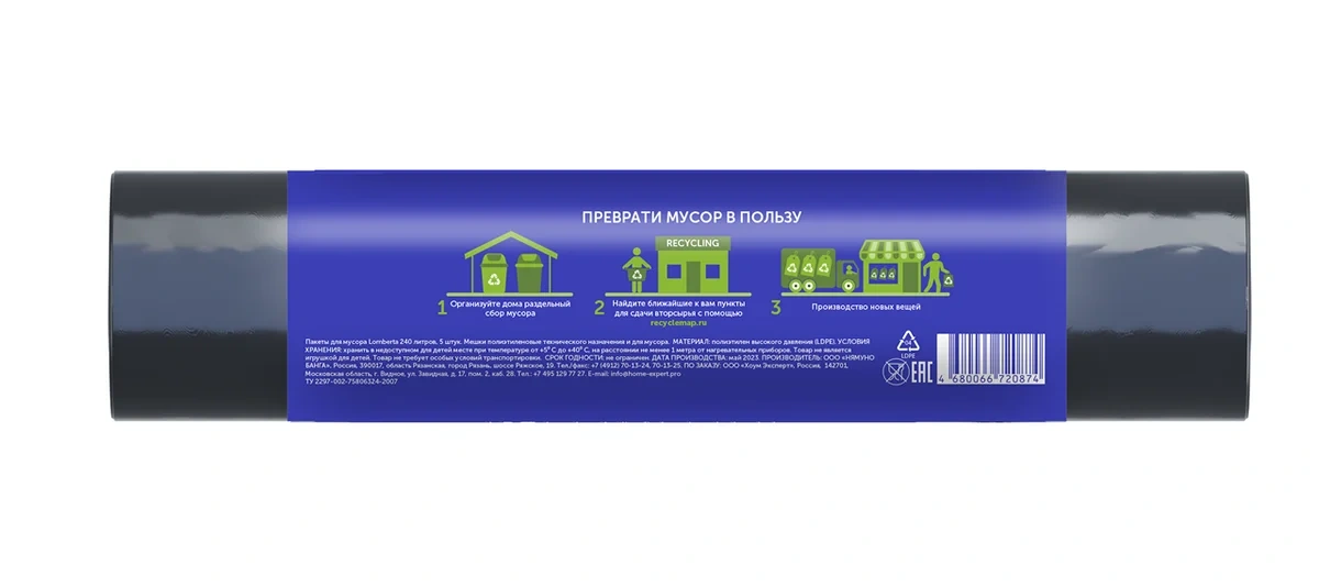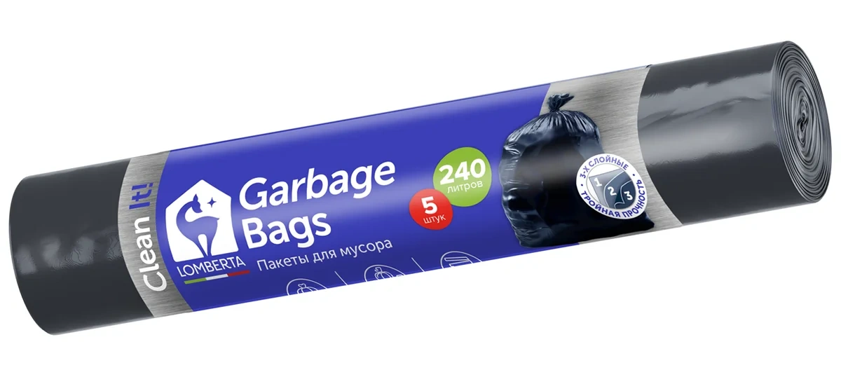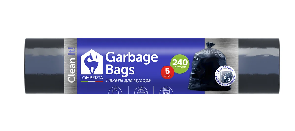 Крупногабаритные мусорные пакеты Lomberta 240л 5 шт - премиальная линейка пакетов для мусора. Убрать крупногабаритный мусор после ремонта или строительства дома, квартиры и дачи непросто, требуются специальные средства и сверхпрочный упаковочный материал. Их используют в уличных баках объемом 120-200 л, на промышленных предприятиях, стройках. Большой полиэтиленовый мешок имеет толщину стенок 40 мкм, позволяя ему выдерживать вес более 15 кг. Легко затягиваются, в них удобно выкидывать мусор.