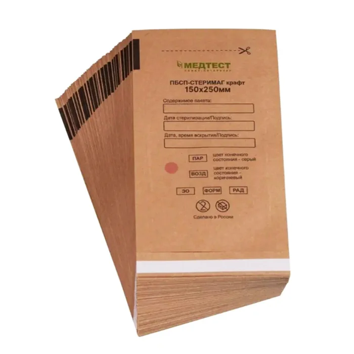 Пакеты для стерилизации 150х250мм, коричневые, самоклеющиеся, 100шт/уп