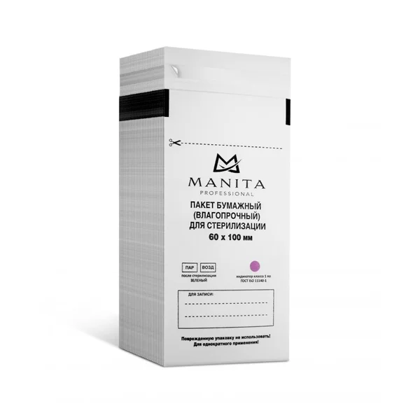 Пакеты для стерилизации Manita Professional 60х100мм, белые, самоклеящиеся, 100шт/уп