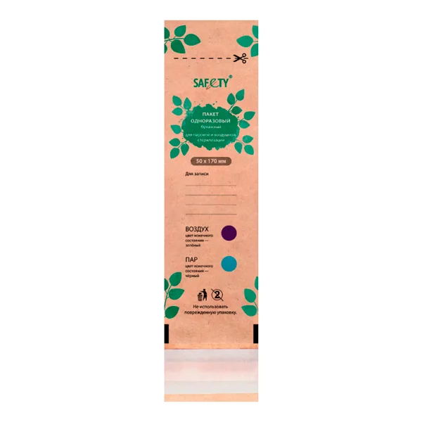 Пакеты для стерилизации инструментов - производятся из влагопрочной медицинской бумаги с повышенными барьерными свойствами и подходят для стерилизации всех видов, в особенности воздушной. При запечатывании пакета, он становится не проницаем для микроорганизмов и бактерий и одновременно легко проницаем для воздуха, пара и других стерилизующих агентов. На поверхности есть химический индикатор 1 класса для контроля паровой и воздушной стерилизации.