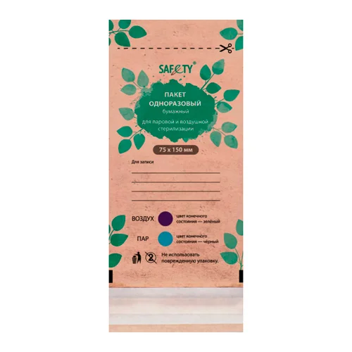 Пакеты для стерилизации Safety 75х150мм, коричневые, 100шт/уп