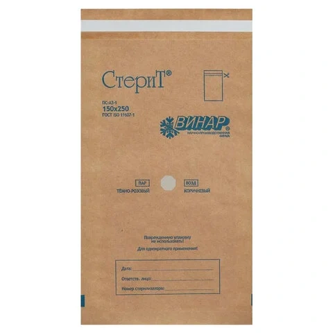 Пакеты для стерилизации Винар Стерит 250х150мм, крафт, самоклеящиеся, 100шт/уп