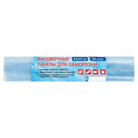 Пакеты фасовочные ДЛЯ ЗАМОРОЗКИ 24х37 см, КОМПЛЕКТ 50 шт., LAIMA, 606709