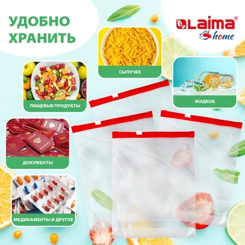 Пакеты с замком-застежкой (слайдер), комплект 10 шт., 3 литра, ПВД, толщина 45 микрон, LAIMA, 606221