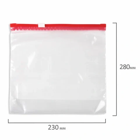 Обладают высокой эластичностью, сохраняют свежесть продуктов, предохраняют содержимое от посторонних запахов. Застежка позволяет быстро и герметично запечатать пакет с содержимым. Прозрачные пакеты с замком 'слайдер' плотностью 45 мкм в комплекте 10 штук. Изготовлены из ПВД (полиэтилена высокого давления). Размер - 23х28 см.