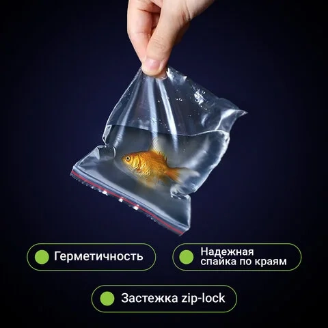 Обладают высокой эластичностью, сохраняют свежесть продуктов, предохраняют содержимое от посторонних запахов. Застежка позволяет быстро и герметично запечатать пакет с содержимым. Прозрачные пакеты с замком 'зиплок' плотностью 35 мкм в комплекте 100 штук. Изготовлены из ПВД (полиэтилена высокого давления). Размер - 20х30 см.