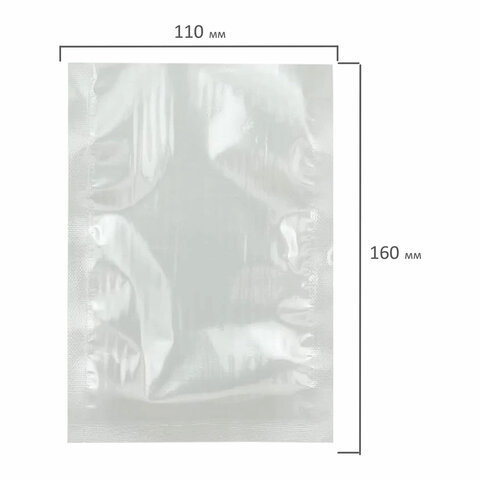 Пакеты вакуумные для продуктов (пром. вакууматоры) 110x160, КОМПЛЕКТ 200 шт., PA/PE эластичные, 6077