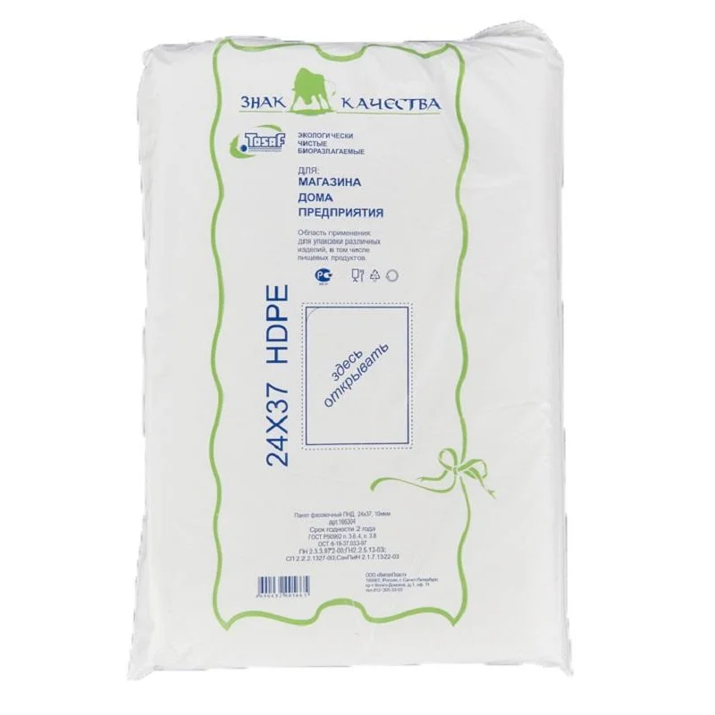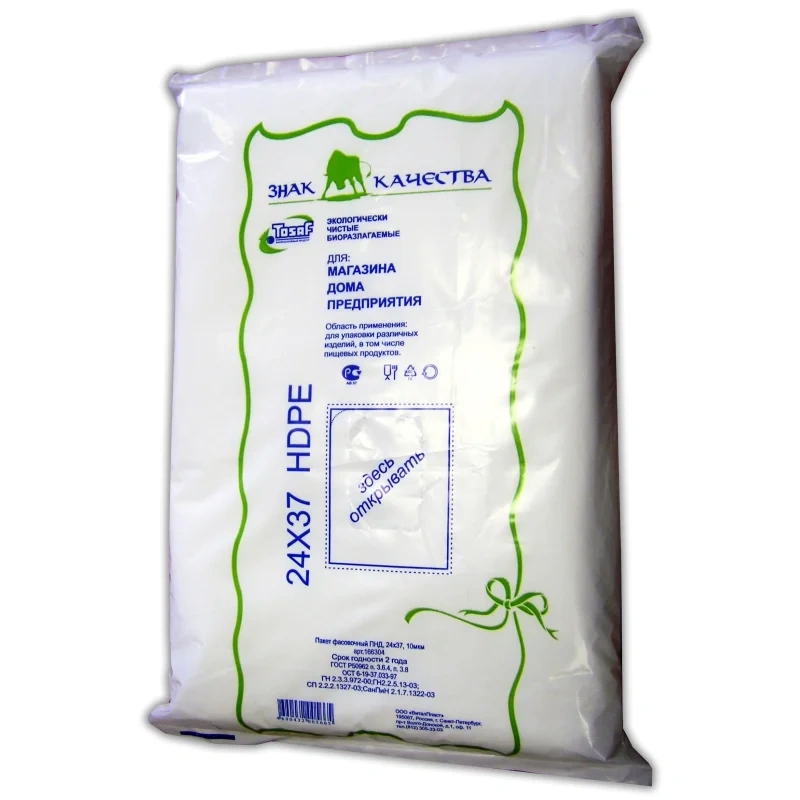 Пакеты фасовочные Знак Качества ПНД БИО прочные 24х37см, 10мкм, 1000шт