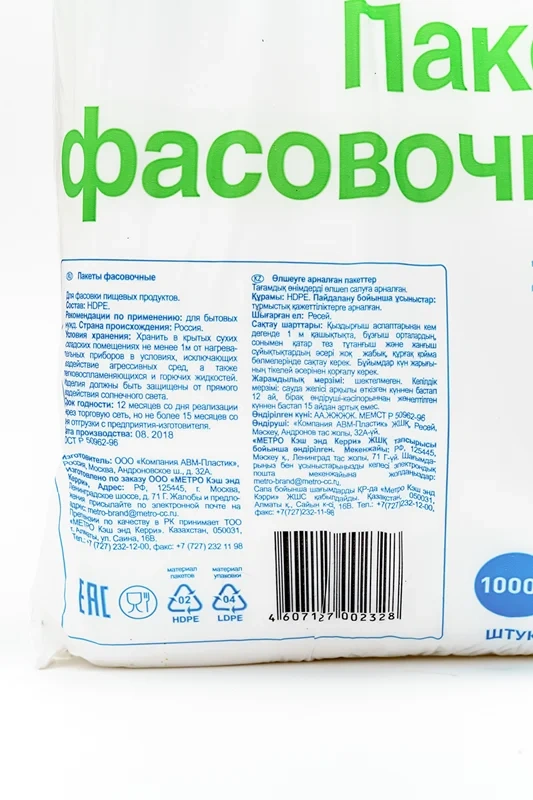 Пакеты фасовочные ПНД 24x37см, 10мкм, 1000шт