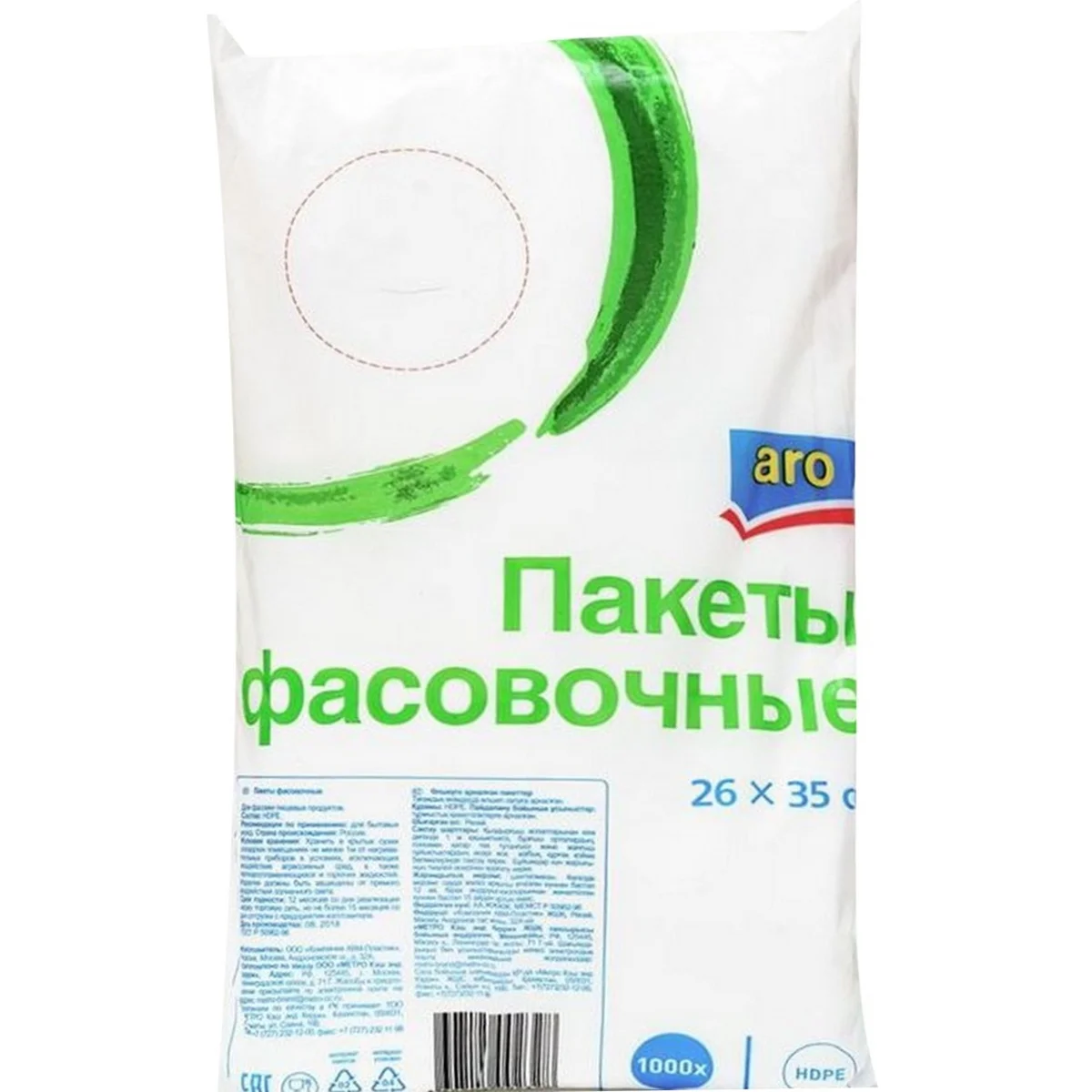 Пакеты фасовочные Aro 26х35см, 8мкн, 1000шт/уп