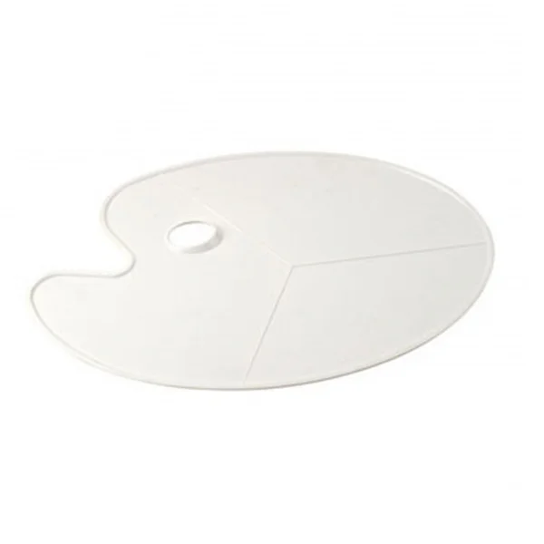Благодаря анатомически выверенной форме палитра удобно ложится в руку, делая процесс живописи легким и комфортным, а ее гладко отполированная поверхность при необходимости легко очищается от лишней краски. Белый цвет пластика позволяет оценить, как смешиваемый оттенок краски будет выглядеть на белом холсте или картоне.