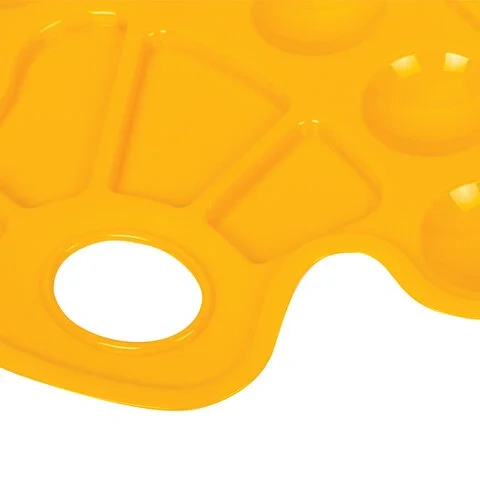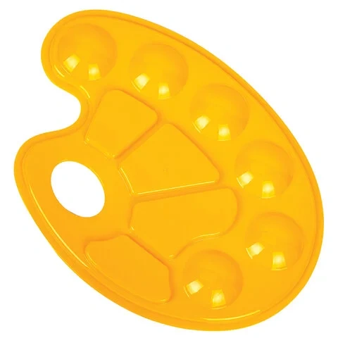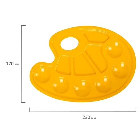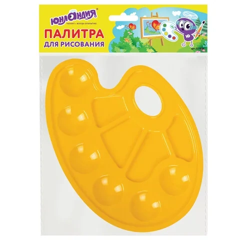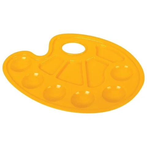 Палитра для рисования ЮНЛАНДИЯ желтая, овальная, 6 ячеек для красок и 4 для смешивания, европодвес,