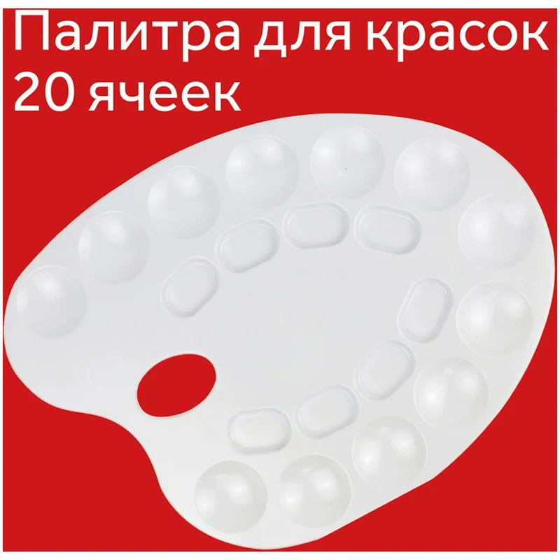 Палитра Гамма, средняя, овальная, 20 ячеек, белая, пластик
