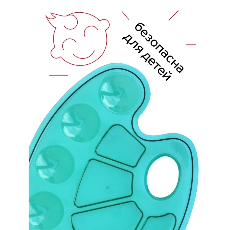 Палитра художника ГАММА овальной формы – отличный инструмент для смешивания красок и получения новых цветов. Она представлена в размере 23,2*16,9 мм и имеет 10 ячеек. Ассорти из 4 цветов: бирюзовый, оранжевый, голубой, розовый. Легкая и практичная, имеет отверстие для руки удобного хвата. Палитра для рисования является незаменимым атрибутом как для начинающих художников, так и для профессиональных творцов.