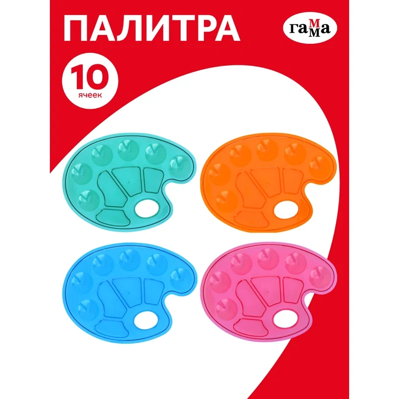 Палитра художника Гамма, 10 ячеек, ассорти, пластик