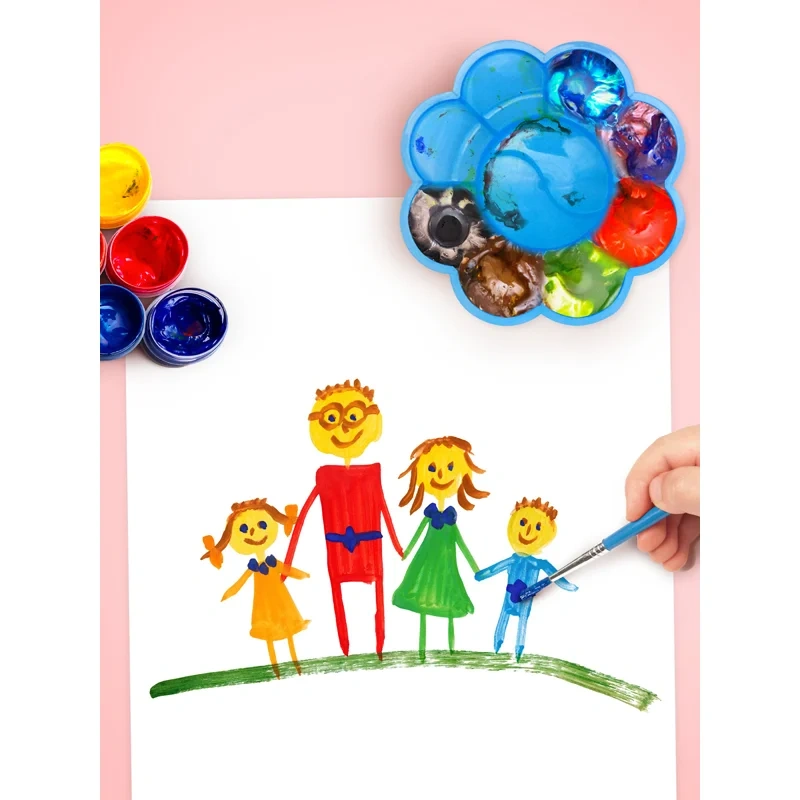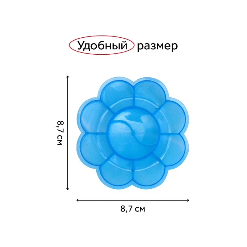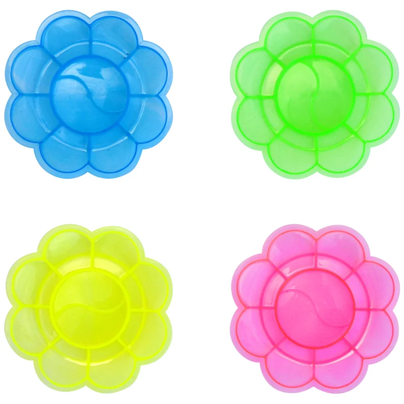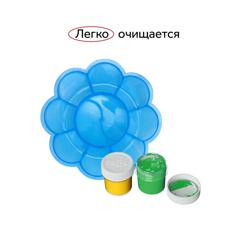 Палитра для рисования ГАММА в форме ромашки – отличный инструмент для смешивания красок и получения новых цветов. Она представлена в размере 87*87 мм и имеет 10 ячеек. Ассорти из 4 неоновых цветов: зелёный, жёлтый, голубой, розовый. Компактная, удобная форма для детской ладошки. Художественная палитра легко отмывается после использования.