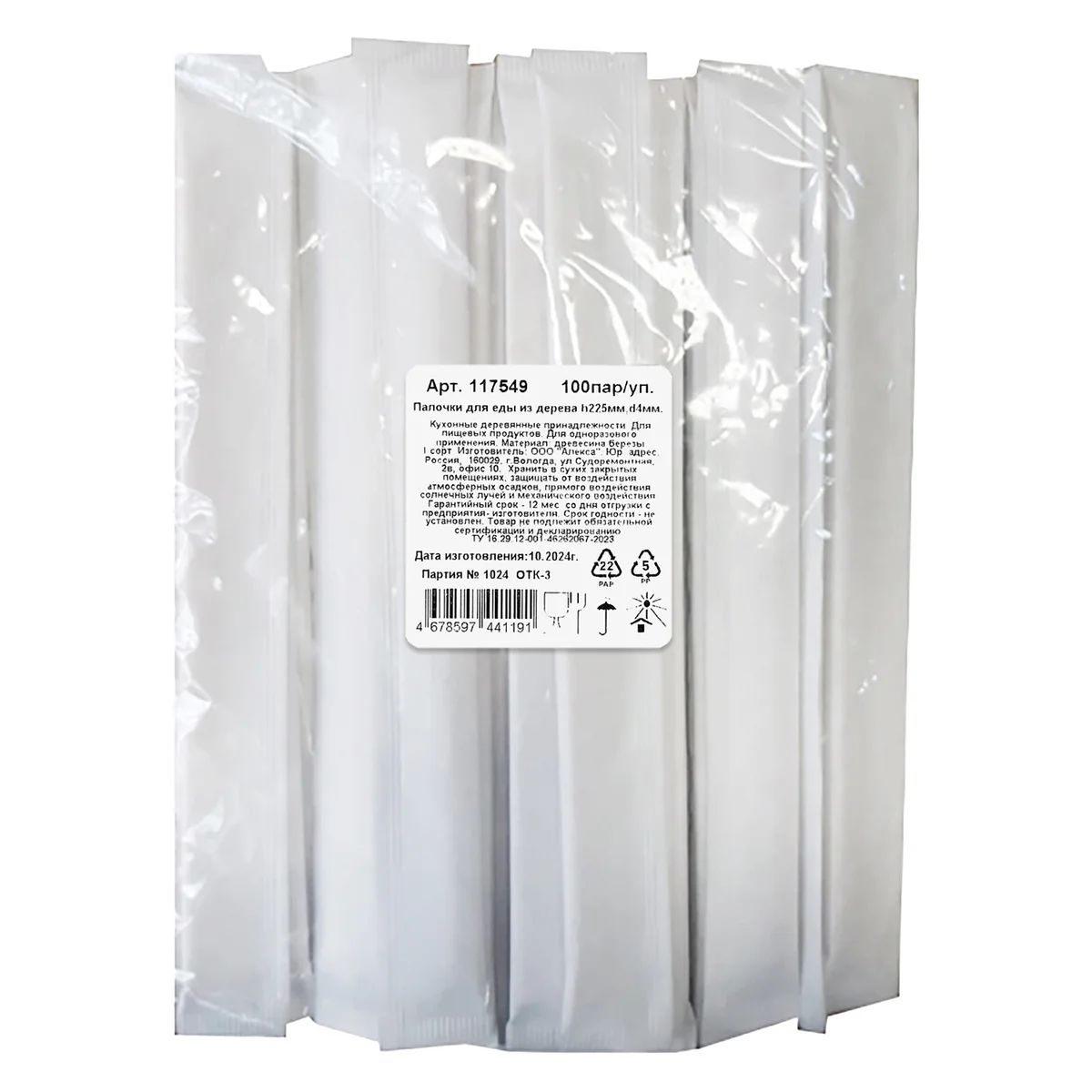 Палочки для еды из дерева в индивидуальной упаковке, 225мм x 4мм